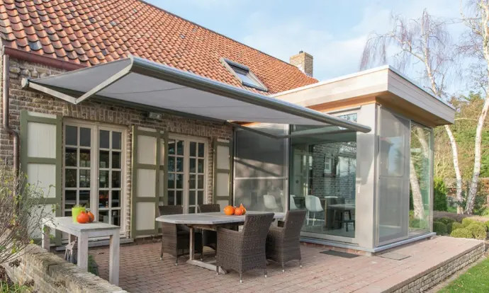 Le Combisol 2500 est conçu suivant le principe du Combisol 3050. Le design de ce modèle est également intemporel, et on peut même accoupler ce store banne jusqu’à une largeur de 18 mètres. Vous bénéficiez aussi de la même flexibilité de système de cassette. Cette protection solaire est composée d’éléments moulés et d’un système de câble dans les bras. Ce modèle peut être fixé sur n’importe quelle façade. Le Combisol 2500 convient d’ailleurs idéalement aux façades anciennes. Lorsque les briques de votre façade ne sont plus dans un état parfait, il est judicieux de choisir une protection solaire qui se fixe avec plusieurs supports muraux… comme le Combisol 2500.